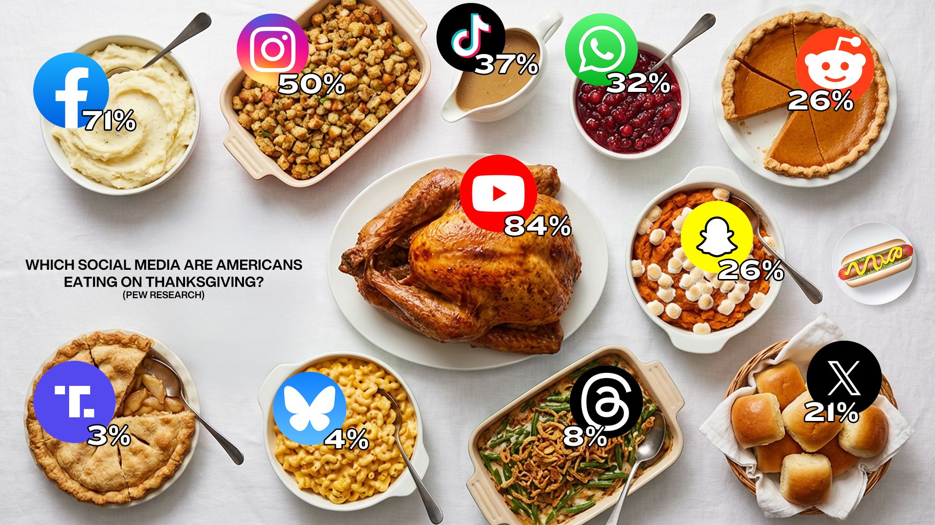 Thought it’d be interesting to make the illustration below to show which social media platforms Americans are spending their time on. Enjoy your Thanksgiving, and don’t eat too much turkey.